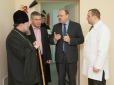 В онкодиспансері в окупованому Луганську митрополит Митрофан (Московський патріархат) освятив томограф, який привезли з Росії. "Митрополит Митрофан (Юрчук) зробив "чин освячення високотехнологічного обладнання (томографа)" з РФ, потім довго лизався з к...
